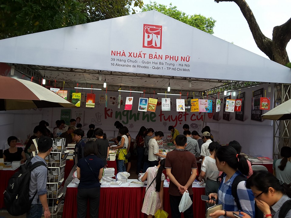Gian hàng của NXB Phụ nữ tại Hội sách tại Công viên Thống Nhất tháng 4/2016